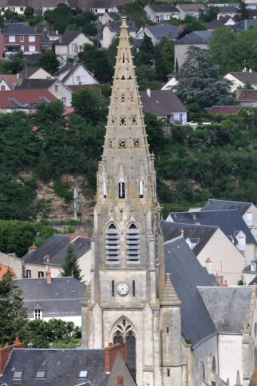 A la fin du XIXe siècle, on lui ajouta un puissant clocher porche (1863), surmonté d’une remarquable flèche ajourée de style néo-gothique.