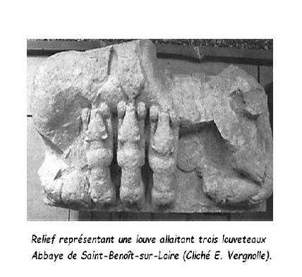 À Neuvy-Saint-Sépulchre, il ne s’agit pas de la représentation d’une louve, mais certainement « d’une lionne allaitant ses petits. »