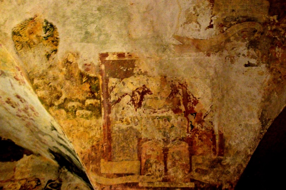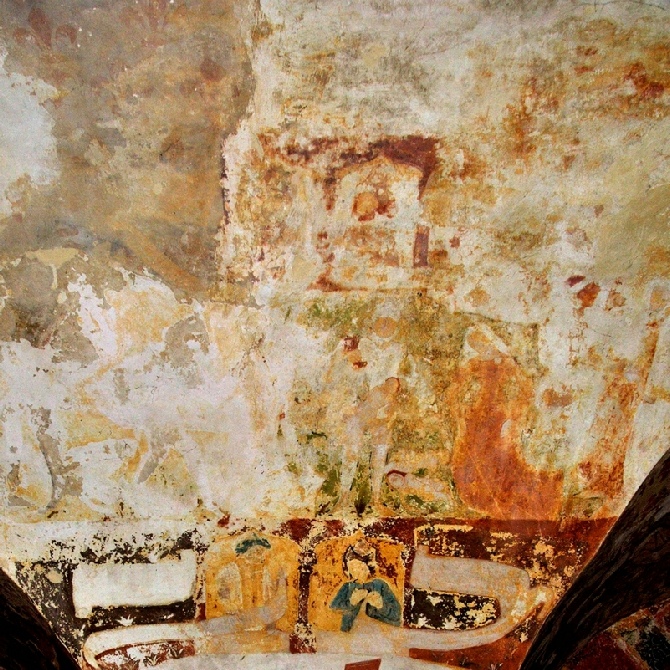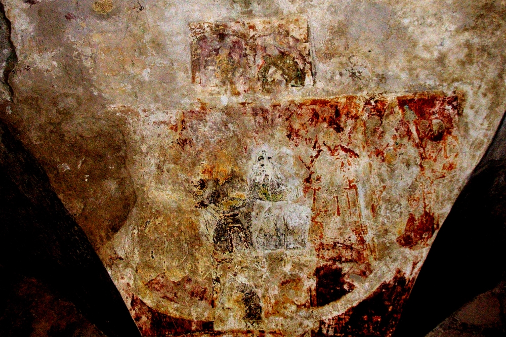 Sur le second pilier, la scène était aussi imitée de la Bible des pauvres, car non reconnaissons en haut et en bas de la fresque, les portraits des prophètes sous des arcatures. Malheureusement, cette fresque est en trop mauvais état pour permettre de l’identifier.