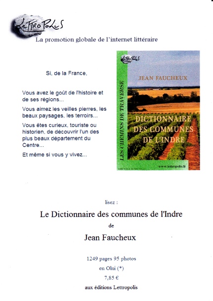 Jean Faucheux et les Éditions de Paumule sont heureux de vous présenter la réédition du Dictionnaire des communes de l’Indre, paru en 2013.