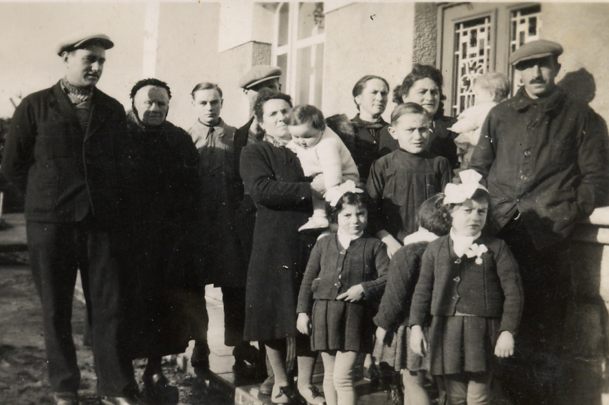 De gauche à droite : Albert Jugé, ? , René Durand, Camille Ménage, Odette Vannier, Maria Soutif, Guy Durand, Denyse Jugé, Ernest Durand, enfants Jugé et Ménage
