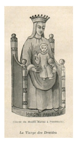 « Longtemps après, les bûcherons de l'endroit, abattant un chêne séculaire, découvrirent en son creux, une antique statue de bois. Elle portait sur son socle l’inscription Virgini Parituræ (à la Vierge qui doit enfanter). Ce fut une célébrité dont on parla bientôt partout et qui incita les Carnutes (habitants de Chartres) à venir quémander une copie »