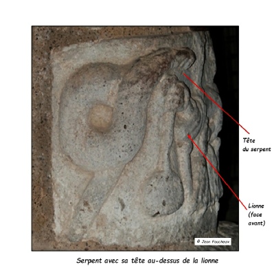 – l’animal représenté porte une crinière, ce qui est clairement un attribut du lion. Les sculpteurs médiévaux accentuent volontairement l’encolure du lion pour signifier sa noblesse et sa force, même lorsqu’il s’agit d’une femelle.